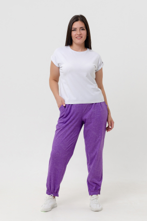 Брюки женские, свободные по бедрам, низ передней части брюк на резинке. Пояс выполнен на многоигольной машине. На передней части брюк внутренние карманы.