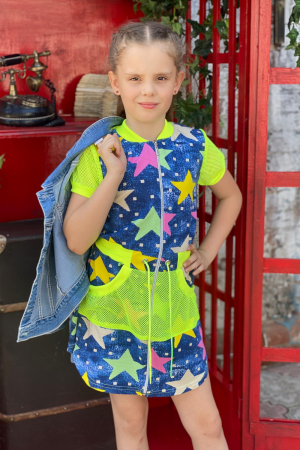 Платье детское на молнии, рукава и карманы из ткани сеточка.