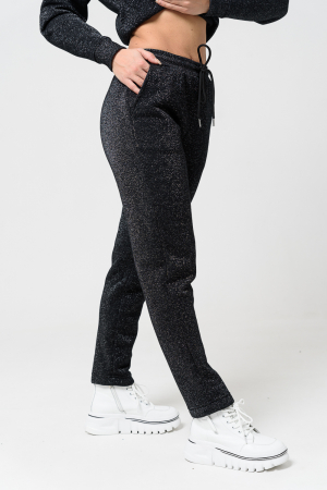 Брюки женские прямого силуэта. Выполнены из мягкой теплой ткани футера с начесом. Пояс брюк на эластичной широкой резинке со шнурком.