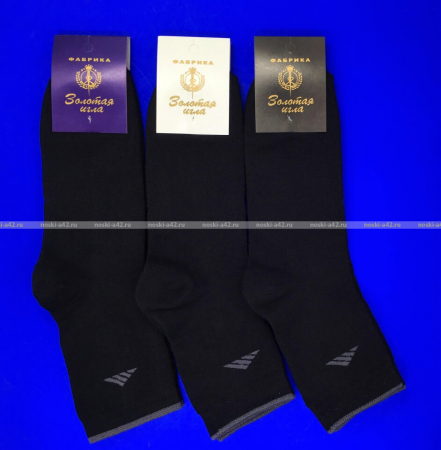 5 ПАР -Золотая игла Термоноски мужские черные с-1010-3 внутри махра (арт. 143)