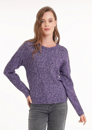 Вязаный джемпер прямого силуэта из акриловой пряжи с добавлением хлопка, основное переплетение - гладь "косы". Длинный втачной рукав. Округлая горловина с бейкой. По низу изделия и рукавов манжеты.