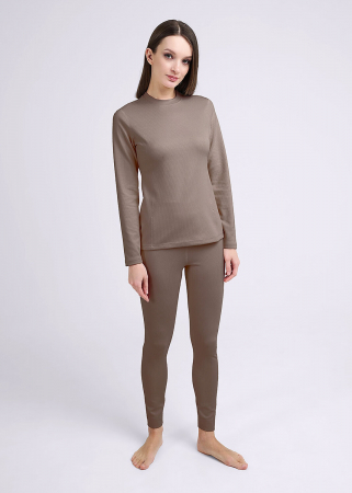 Комплект из трикотажного ажурного полотна. Изделие плотно прилегает к телу, не сковывает движений и подчеркивает силуэт. По низу джемпера нашивка с силиконовой печатью. Леггинсы без боковых швов и цельнокроеным поясом с эластичной резинкой внутри.