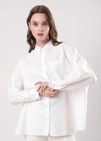 Рубашка из текстильного полотна поплин, прямого силуэта на пуговицах с отложным воротником на стойке.По спинке кокетка.Рукав рубашечный полной длины, по низу рукава манжеты на пуговицах, низ изделия фигурный, спереди нагрудный карман.Производство Турция.