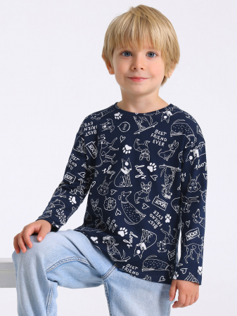 Лонгслив для мальчика выполнен из кулира – легкого хлопкового набивного полотна. Изделие прямого силуэта с длинными рукавами со спущенной линией плеча. Уход: только машинная стирка (руками не стирать!) при температуре 40 градусов, без предварительного замачивания.