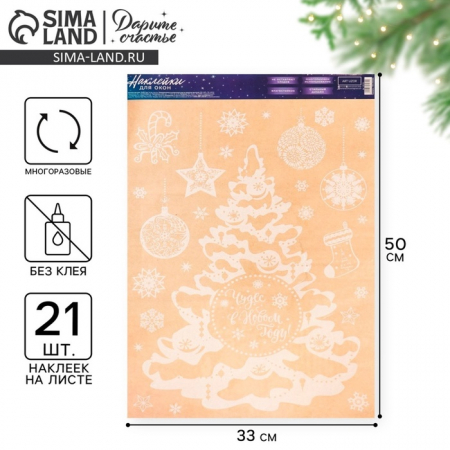 Наклейки на окна многоразовые «С Новым годом», 33?50 см (арт. 3401954)