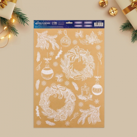 Наклейки на окна многоразовые «Новогодние украшения», 33?50 см (арт. 7689658)