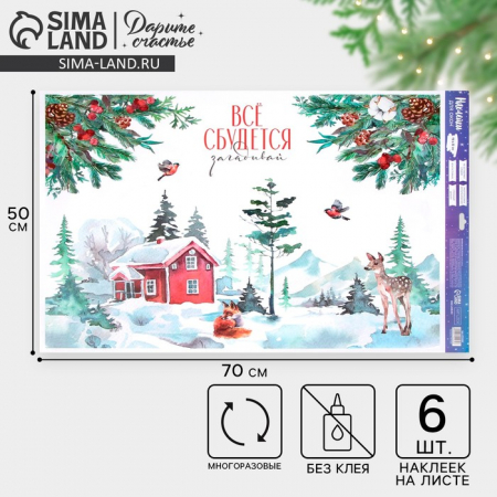 Наклейки на окна многоразовые «Всё сбудется в Новый год», 50?70 см (арт. 9722069)