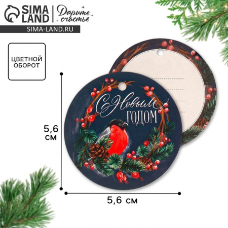 Шильдик новогодний на подарок «Снегирь», 5.5?5.5 см (арт. 5117774)
