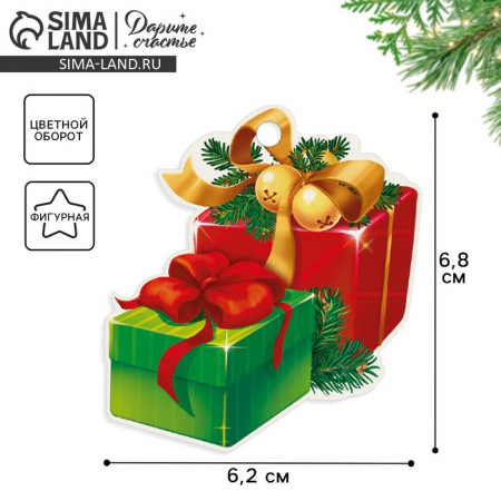 Шильдик новогодний декоративный на подарок «Подарки», 6?6.5 см (арт. 10001226)