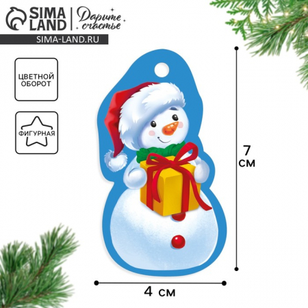 Шильдик новогодний декоративный на подарок «Снеговик», 4?7 см (арт. 10001227)