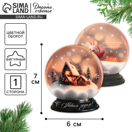 Шильдик новогодний декоративный на подарок «Снежный шар», 6?7 см (арт. 10001225)