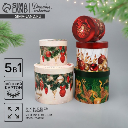 Набор подарочных коробок 5 в 1 «Классический Новый год», 13?14?19.5?22 см (арт. 9718368)