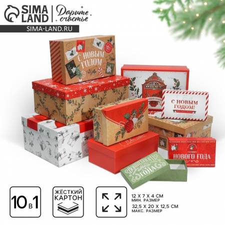 Набор новогодних подарочных коробок 10 в 1 «Волшебного Нового года», 12?7?4 - 32.5?20?12.5 см (арт. 7790662)