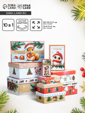 Набор подарочных новогодних коробок 10 в 1 «Новогодняя почта», 30?19?11.5 - 12?6.5?4 см (арт. 10894151)