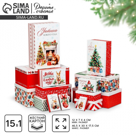Набор новогодних подарочных коробок 15 в 1 «Уютный Новый год», 12 ? 7 ? 4 см - 46.5 ? 30 ? 17.5 см (арт. 10371318)