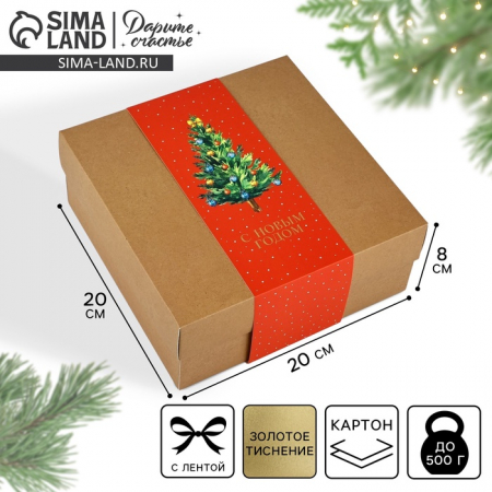 Коробка подарочная новогодняя складная «С Новым годом», тиснение, 20?20?8 см (арт. 10341917)
