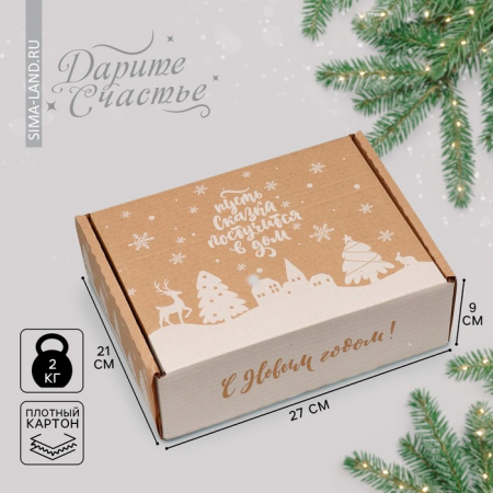 Коробка новогодняя складная «Снежный город», бурый, 27?21?9 см (арт. 9926458)