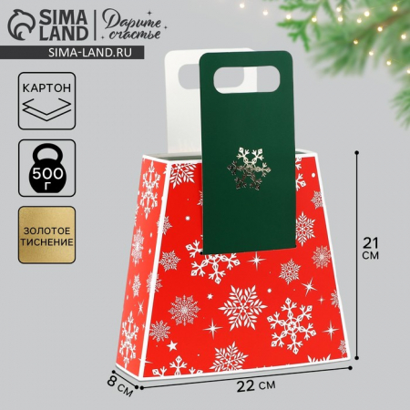 Коробка подарочная новогодняя складная с ручками «Снежинки» 23?8?32 см (арт. 10444883)