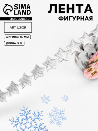 Лента декоративная фигурная «Звёзды», 15 мм, 9±0.5 м, цвет серебряный (арт. 4337256)