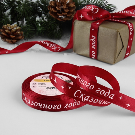 Лента атласная «Сказочного года», 15 мм, 23±1 м, красная (арт. 9561248)