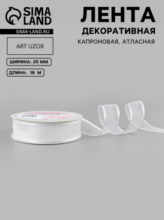 Лента декоративная, капроновая/атласная, 20 мм, 18±1 м, белая (арт. 7114105)