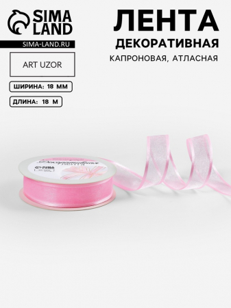 Лента декоративная, капроновая, атласная, 18 мм, 18±1 м, розовая (арт. 7114109)