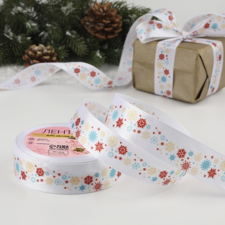 Лента атласная «Снежный карнавал», 25 мм, 23±1 м, белая (арт. 10324262)