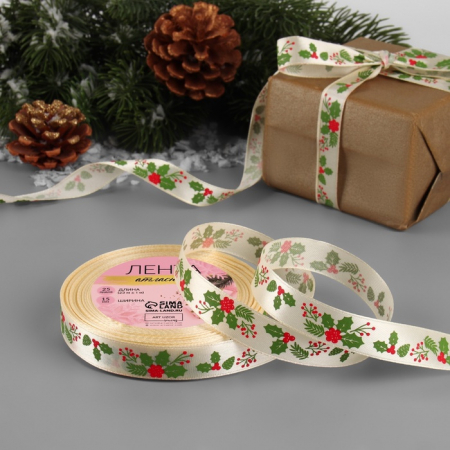 Лента атласная «Омела», 15 мм, 23±1 м, бежевая (арт. 7706145)