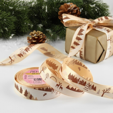 Лента атласная «Снежные горы», 25 мм, 23±1 м, бежевая (арт. 9561263)