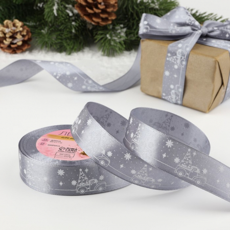 Лента атласная «Машина с ёлкой», 25 мм, 23±1 м, тёмно-серая (арт. 6784853)