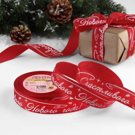 Лента репсовая «Счастливого Нового года!», 25 мм, 23±1 м, красная (арт. 9561270)