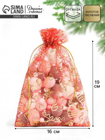 Мешочек подарочный органза «С Новым годом!», 16?24 см (арт. 10864705)
