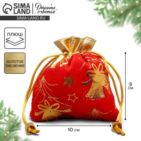 Мешочек подарочный плюш «Новогодние салюты», колокольчики, тиснение, 10?12 см ± 1.5 см (арт. 9717648)