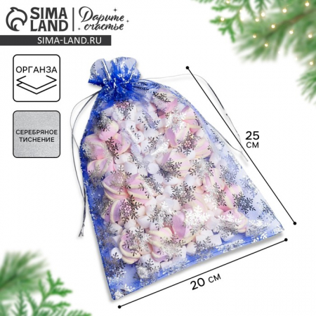 Мешочек подарочный новогодний органза «Снежинки», 20?30 см ± 1.5 см (арт. 5046482)