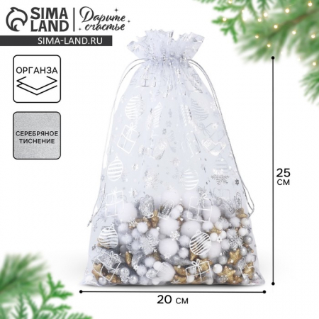 Мешочек подарочный «Новогодние подарки», органза, белый, 20?30 см (арт. 10336668)