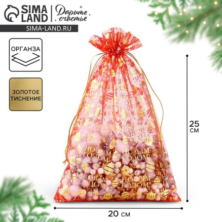 Мешочек подарочный «С Новым годом», органза, красный, 20?30 см (арт. 10336671)