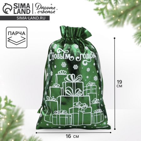 Мешочек подарочный парча «Новогодние подарки», зелёный, 16?24 см (арт. 10335288)