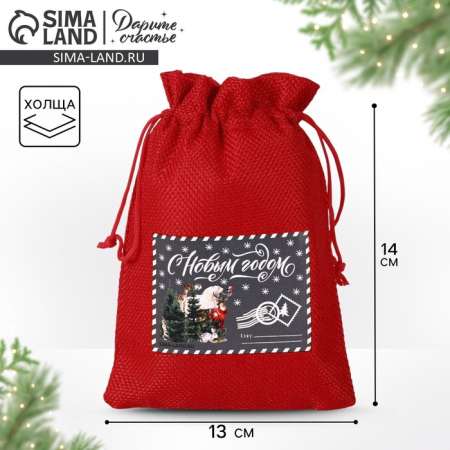 Мешочек новогодний подарочный с термонаклейкой «Посылка для тебя», 13?18 см ± 1.5 см (арт. 7823816)