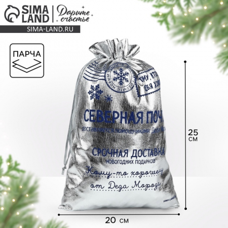 Мешочек подарочный новогодний парча «Северная почта», серебро, 20?30 см (арт. 10335293)