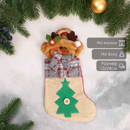 Носок для подарков «Лосяш и ёлочка» 12?24 см, бежевый (арт. 7856792)