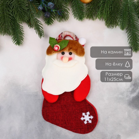 Носок для подарков «Дед Мороз с ягодкой» 11?26 см, красный (арт. 7856798)