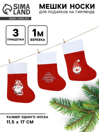 Носки для подарков новогодние «Новогодние мечты», набор 3 шт., прищепки, верёвка (арт. 10862043)