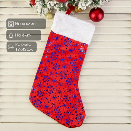 Носок для подарков «Снежинки» 19?42 см, красный (арт. 2363896)