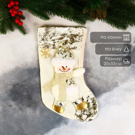 Носок для подарков «Снеговик в шарфике с поталью» 20?33 см, золотистый (арт. 9692623)