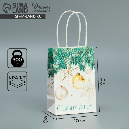 Пакет подарочный новогодний крафтовый «Роскошь Нового года», 15?10?6 см (арт. 9660658)