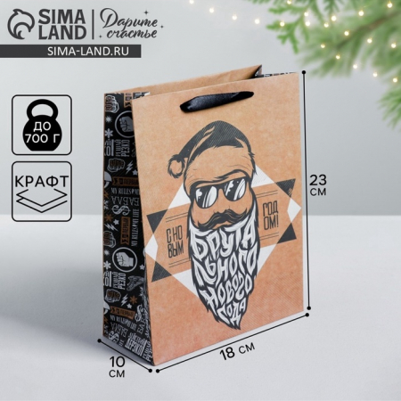 Пакет подарочный новогодний крафтовый «Брутального года», MS 18?23?8 см (арт. 4275652)