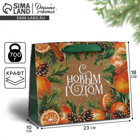 Пакет подарочный новогодний крафтовый «С Новым годом», MS 18?23?10 см (арт. 10365481)