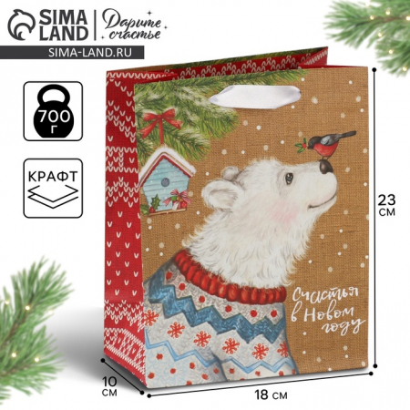 Пакет подарочный новогодний крафтовый «Счастья в Новом году», MS 18?23?8 см (арт. 2156492)