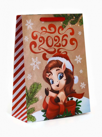 Пакет новогодний крафтовый подарочный «Новый год 2026», лошадь, L 31?40?11.5 см (арт. 10864757)