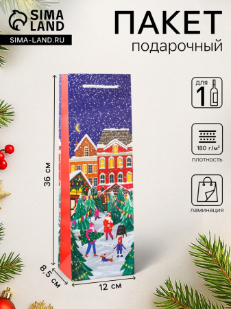 Пакет подарочный новогодний под бутылку, упаковка «Праздник в городе», 12?36?8.5 см (арт. 10544275)